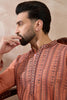 Orange Silk Blend Embroidered Mandarin Collar Straight Kurta With Trouser MKSET2043