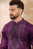 Purple Silk Blend Geometric Embroidered Straight Kurta With Trouser MKSET1687